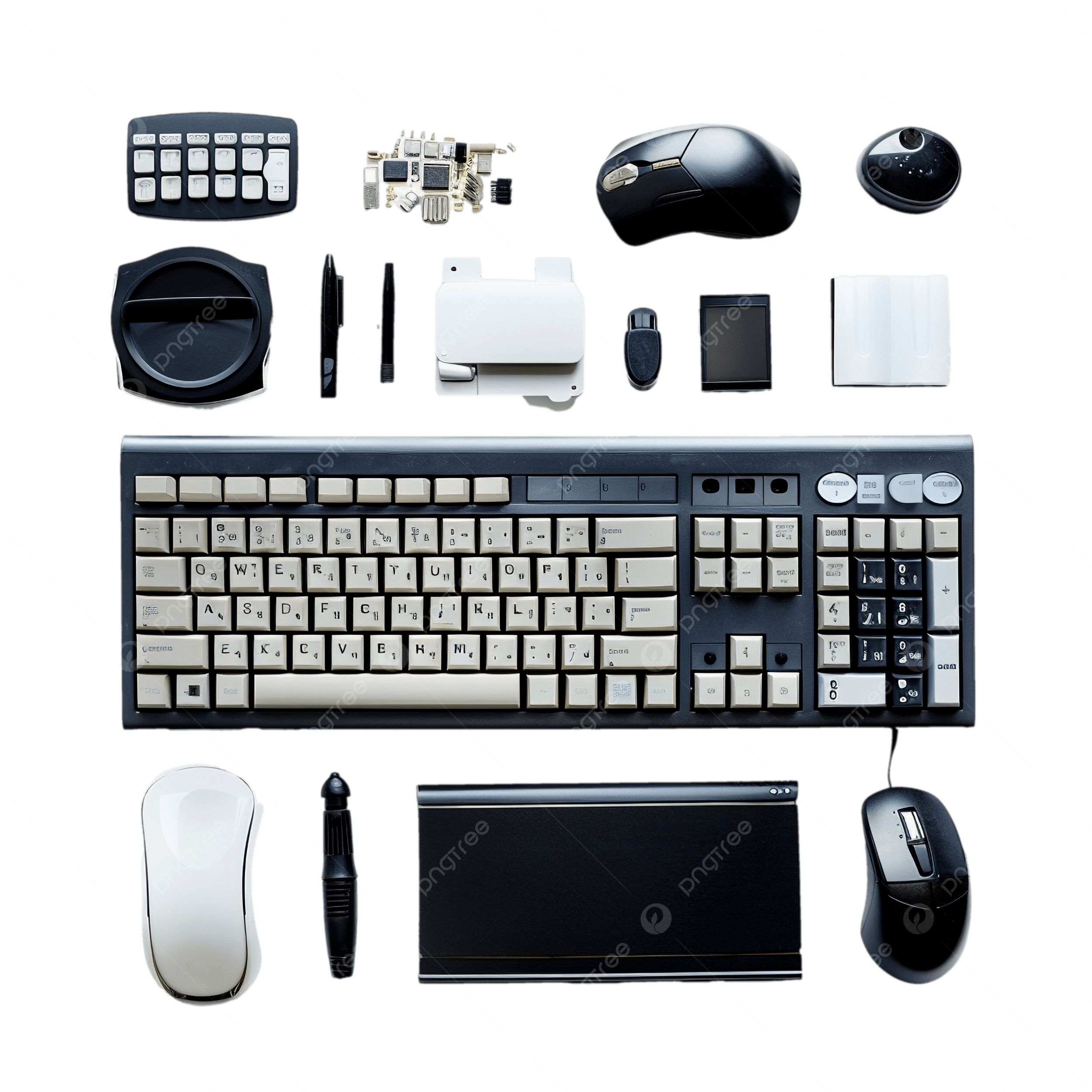 Desktops, laptops, monitors, keyboards, mice, printers, servers, and networking devices.